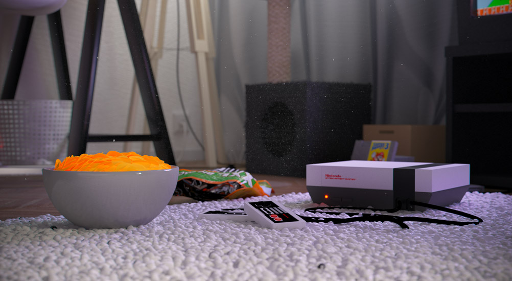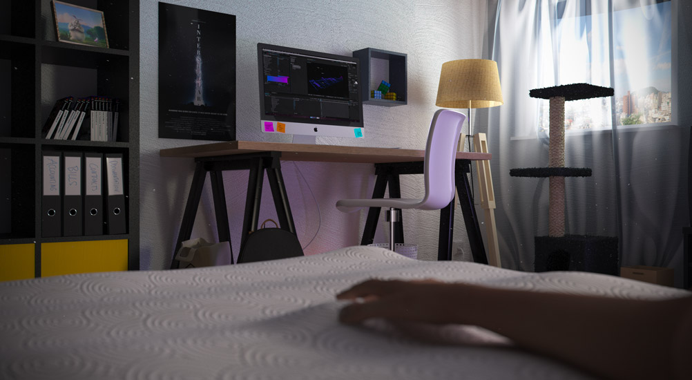 Réalisation et décoaration d'une chambre à coucher. Ajout de références personnelles et de clins d'oeil. Ce projet a été le dernier réalisé durant ma formation de modélisation 3D chez Frima Formations
